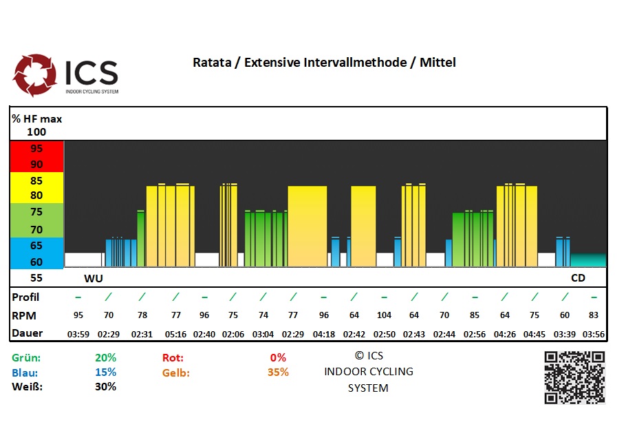 Die Grundidee dieser extensiven Intervallstunde ist die Abfolge von langen zu kurzen Intervallen. Es sind insgesamt sechs Intervalle , davon 2 x Tempo, diese entsprechend 1 x lang und 1 x kurz und beide hintereinander in der Mitte der Stunde.